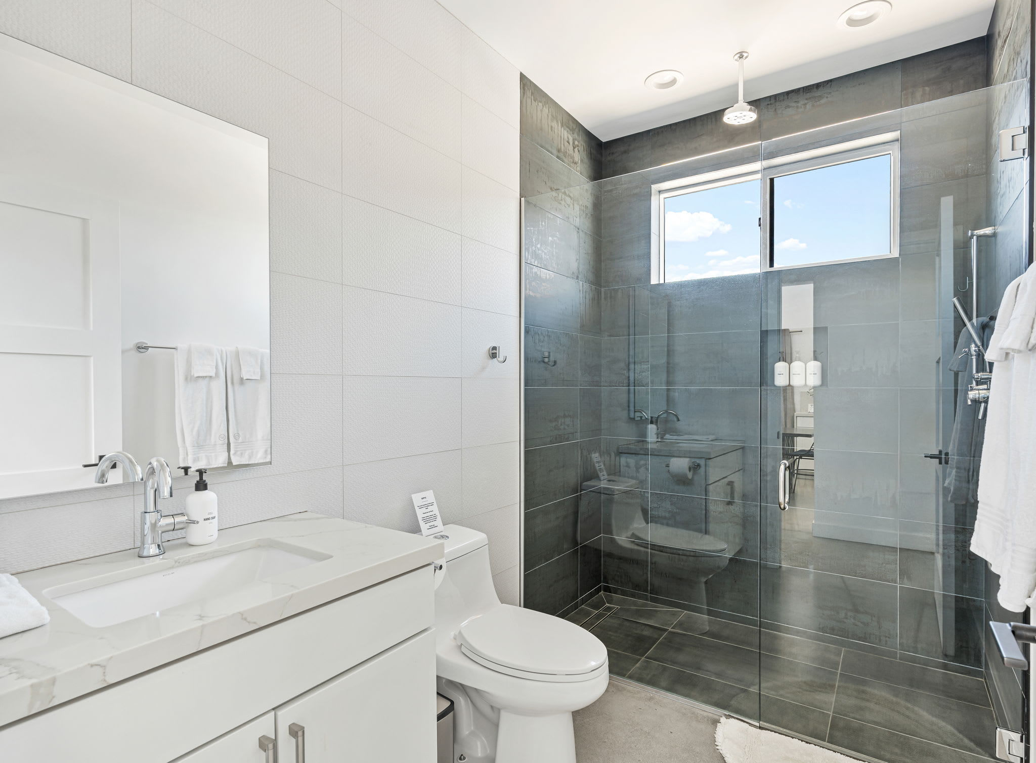 ◎ Four full bathrooms with walk-in showers and modern fixtures