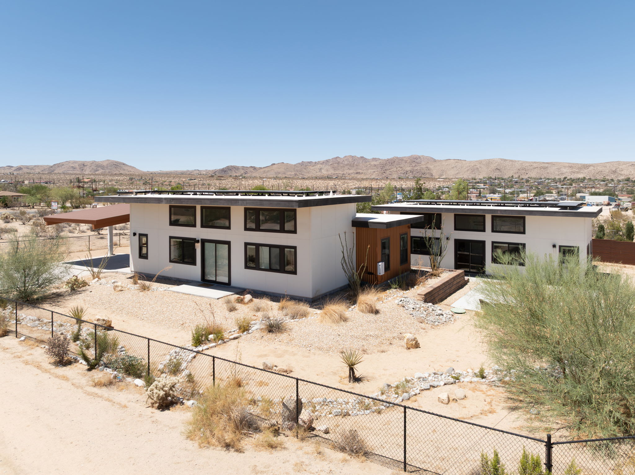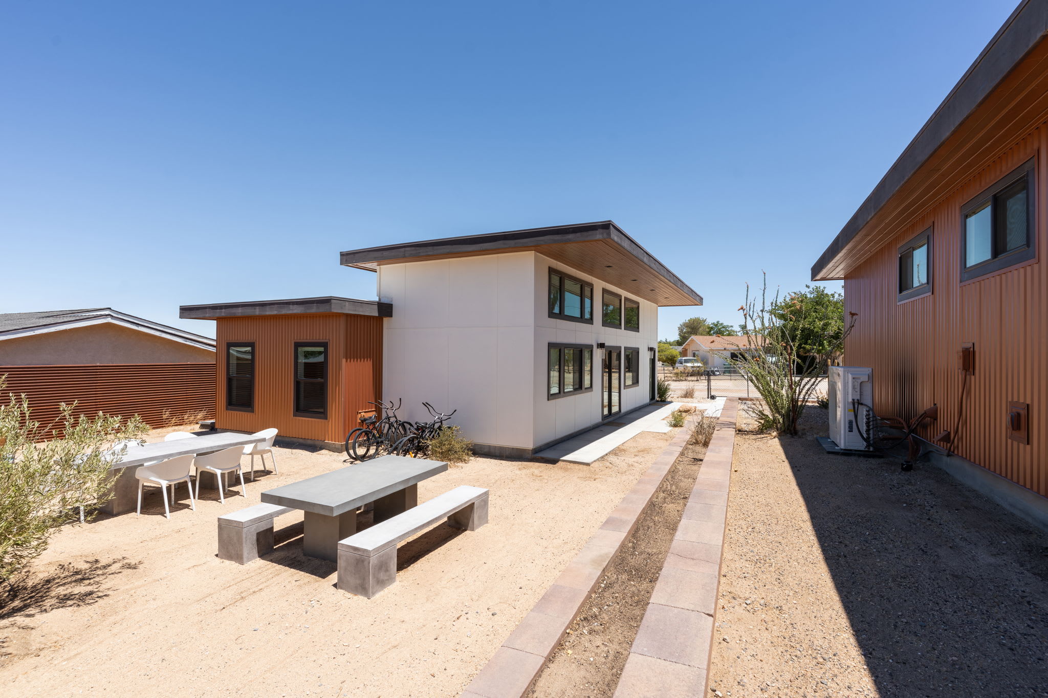 ► Two modern homes surrounding a shared outdoor gathering space