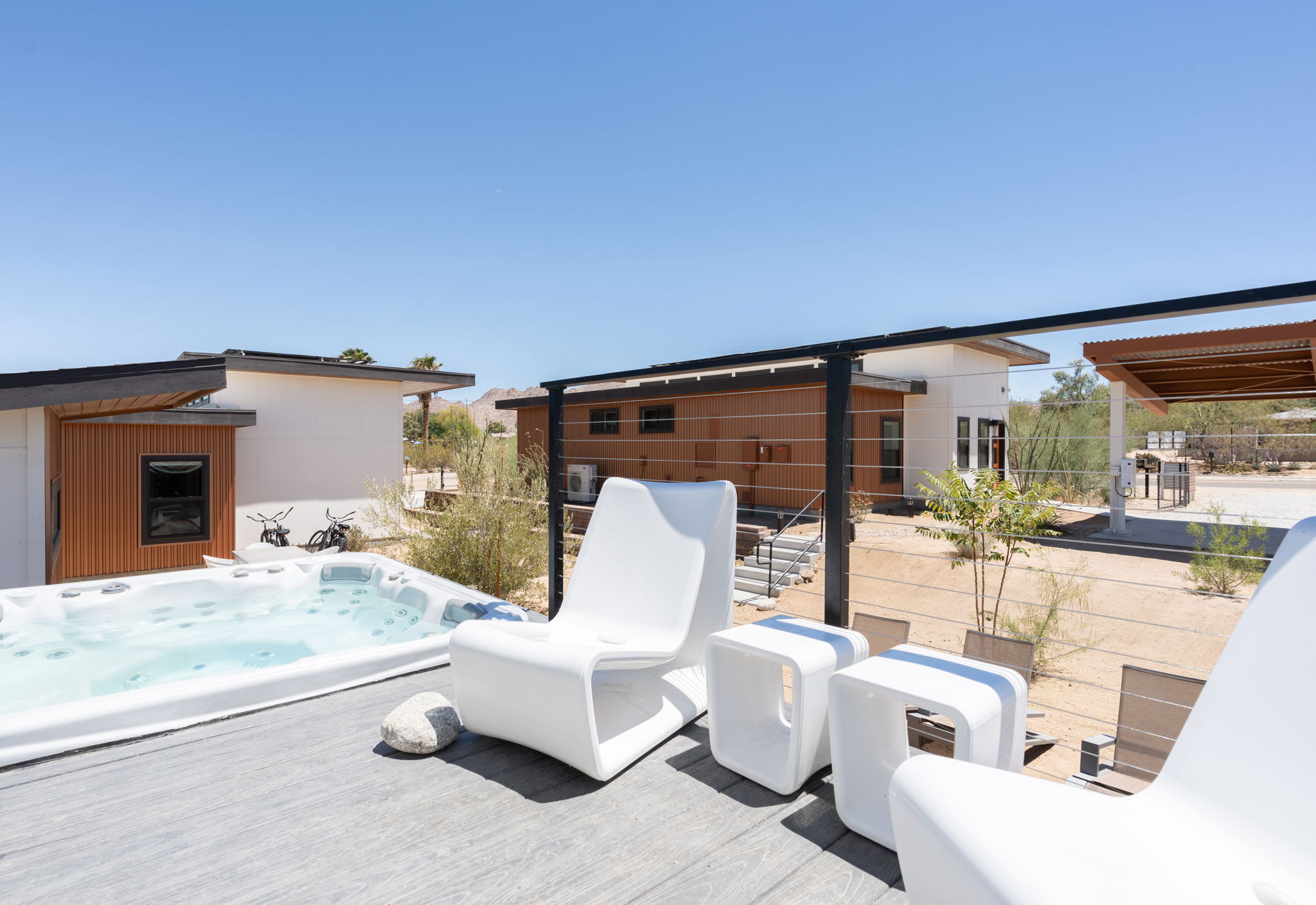 ◎ Propane fireplace lounges for cool desert evenings