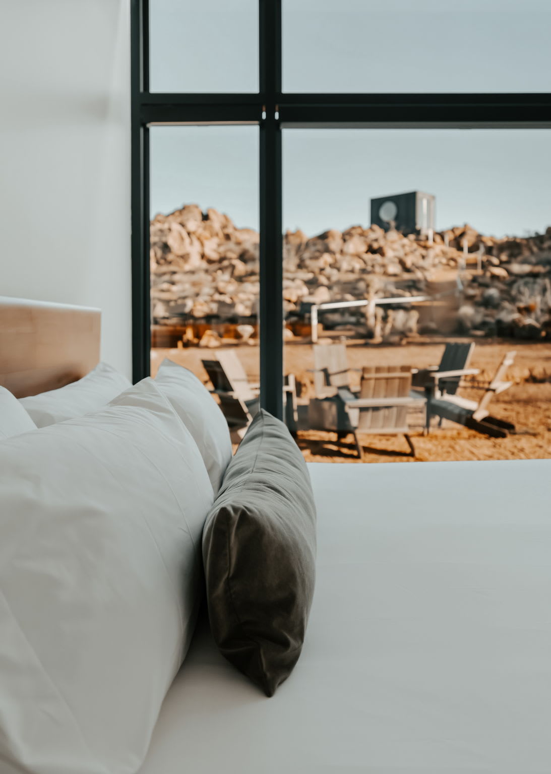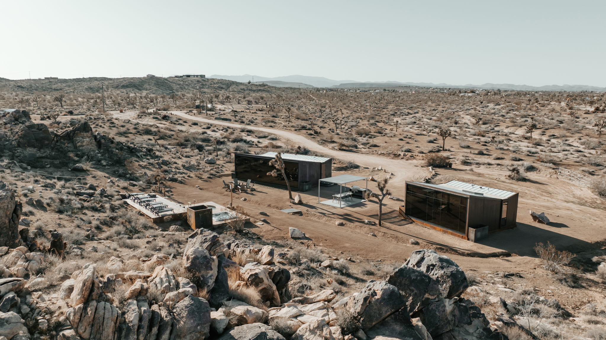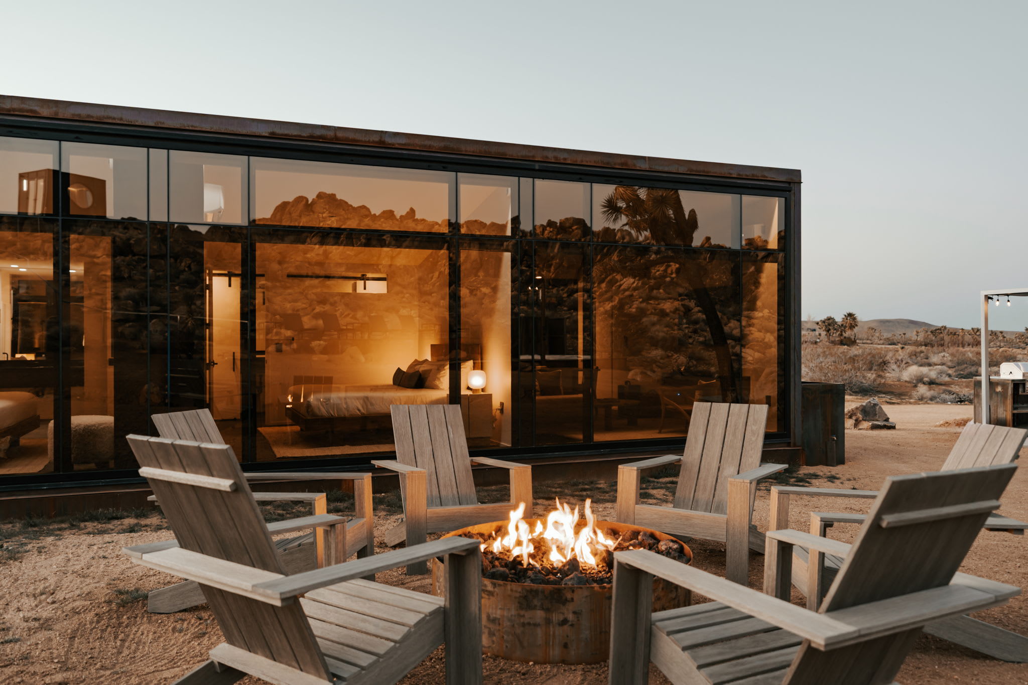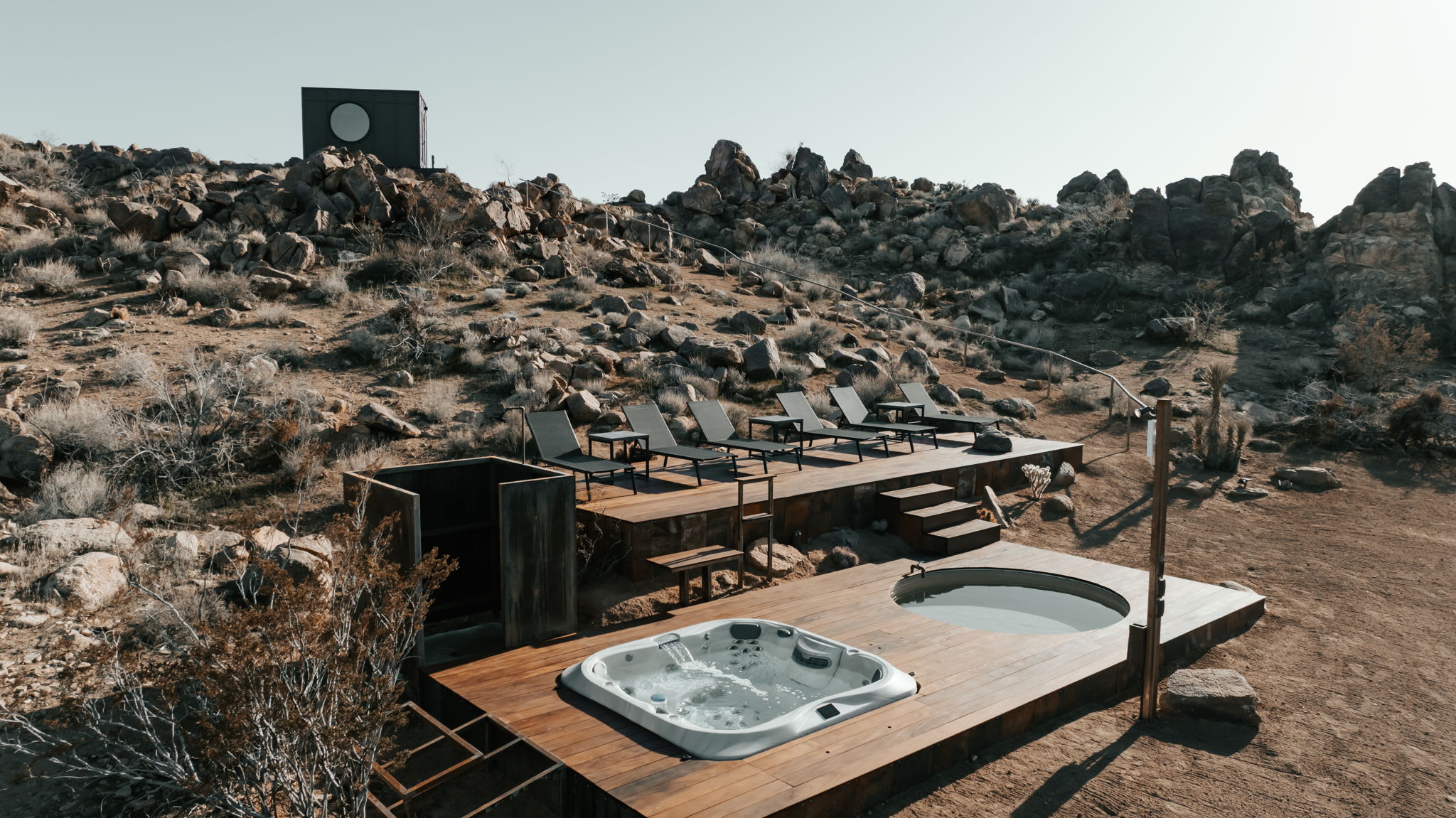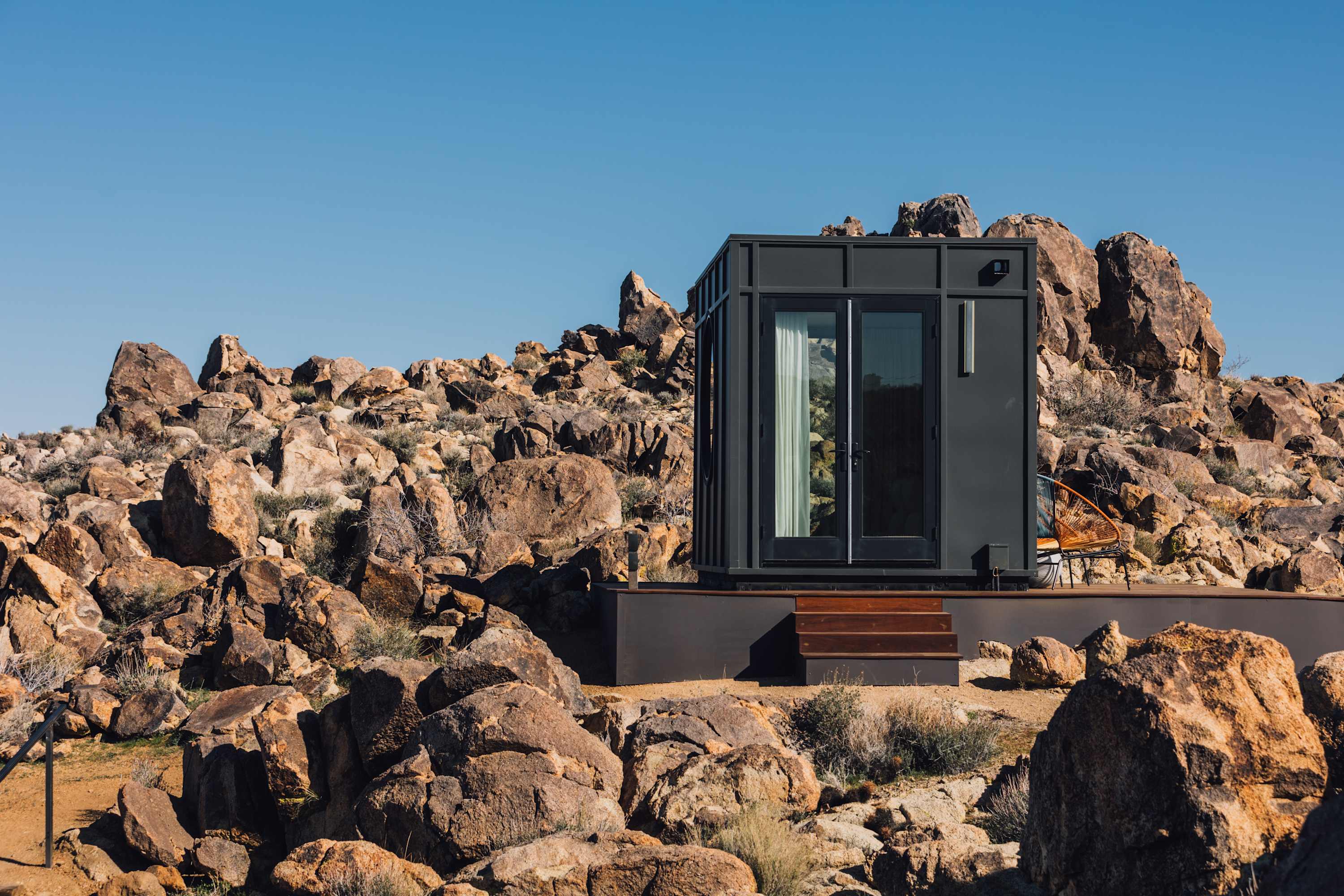 Welcome to Reflections by Homestead Modern - a serene desert sanctuary where glass walls mirror ancient rock formations and the stillness of Joshua Tree wraps around you. Set against the mountains and thoughtfully designed for any sized group that wants privacy, this secluded retreat invites you to slow down, reconnect, and soak in the beauty of the High Desert. From stargazing soaks to sunrise yoga in the glass studio perched in the boulders, Reflections is an immersive escape into nature and quiet luxury.