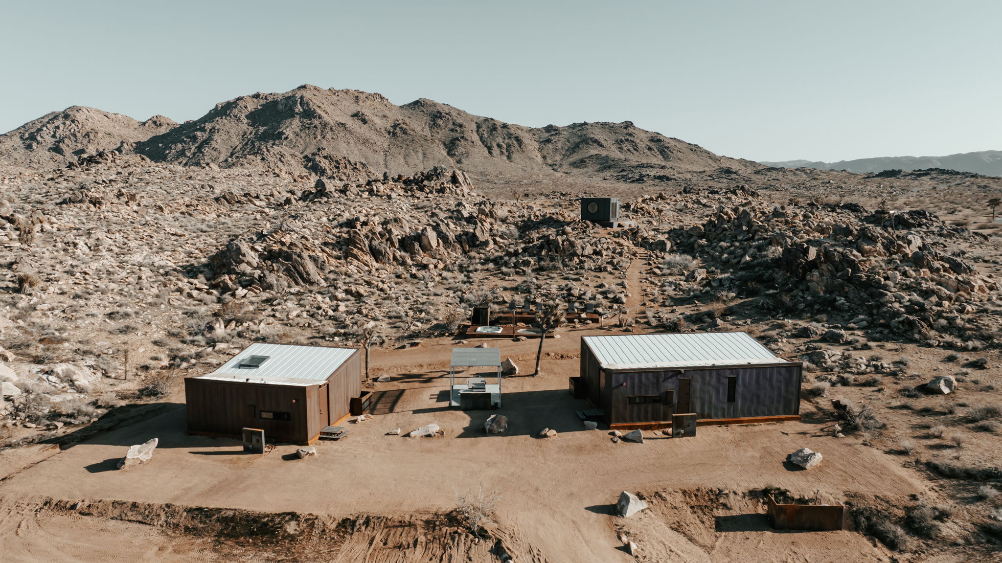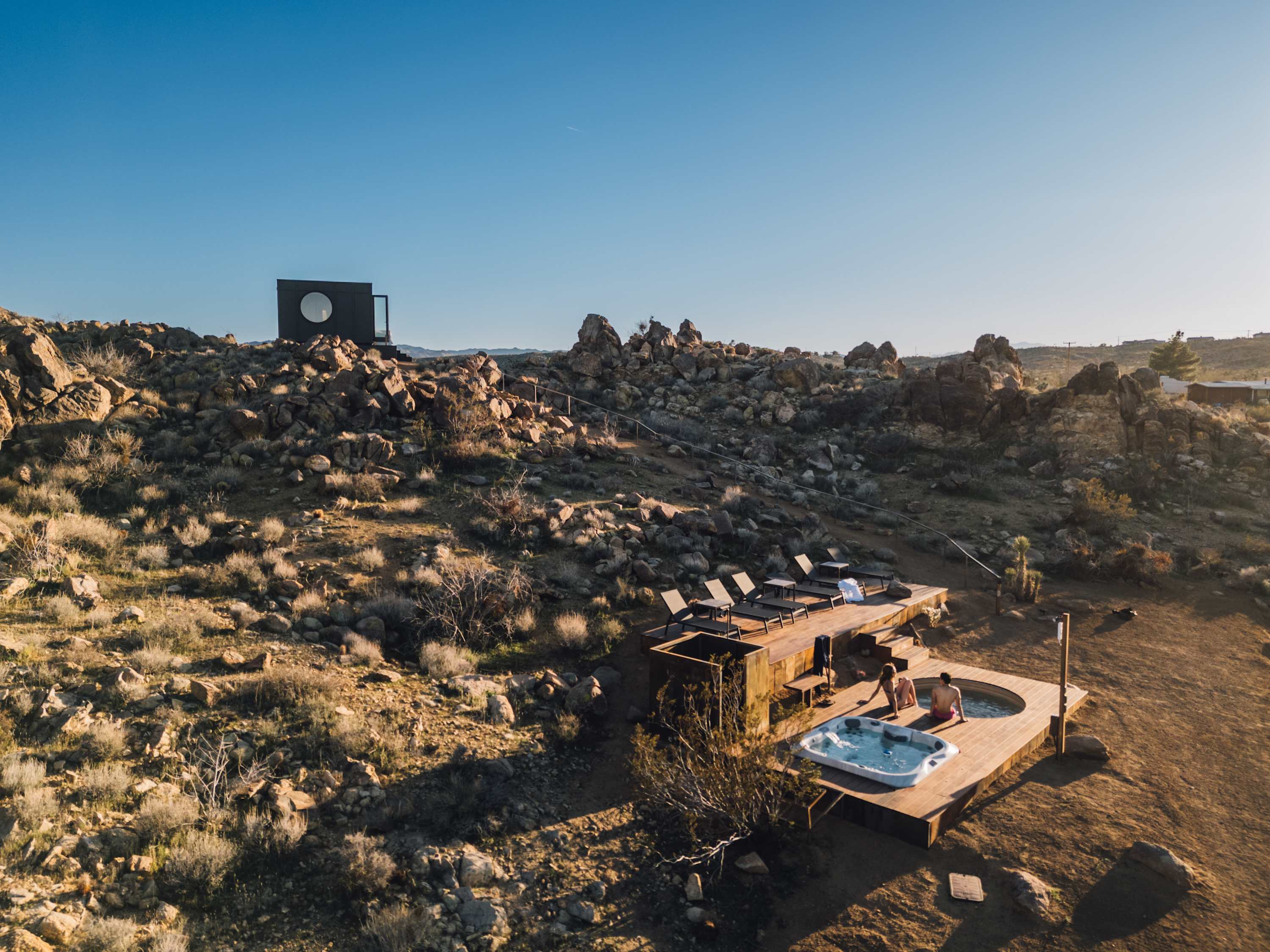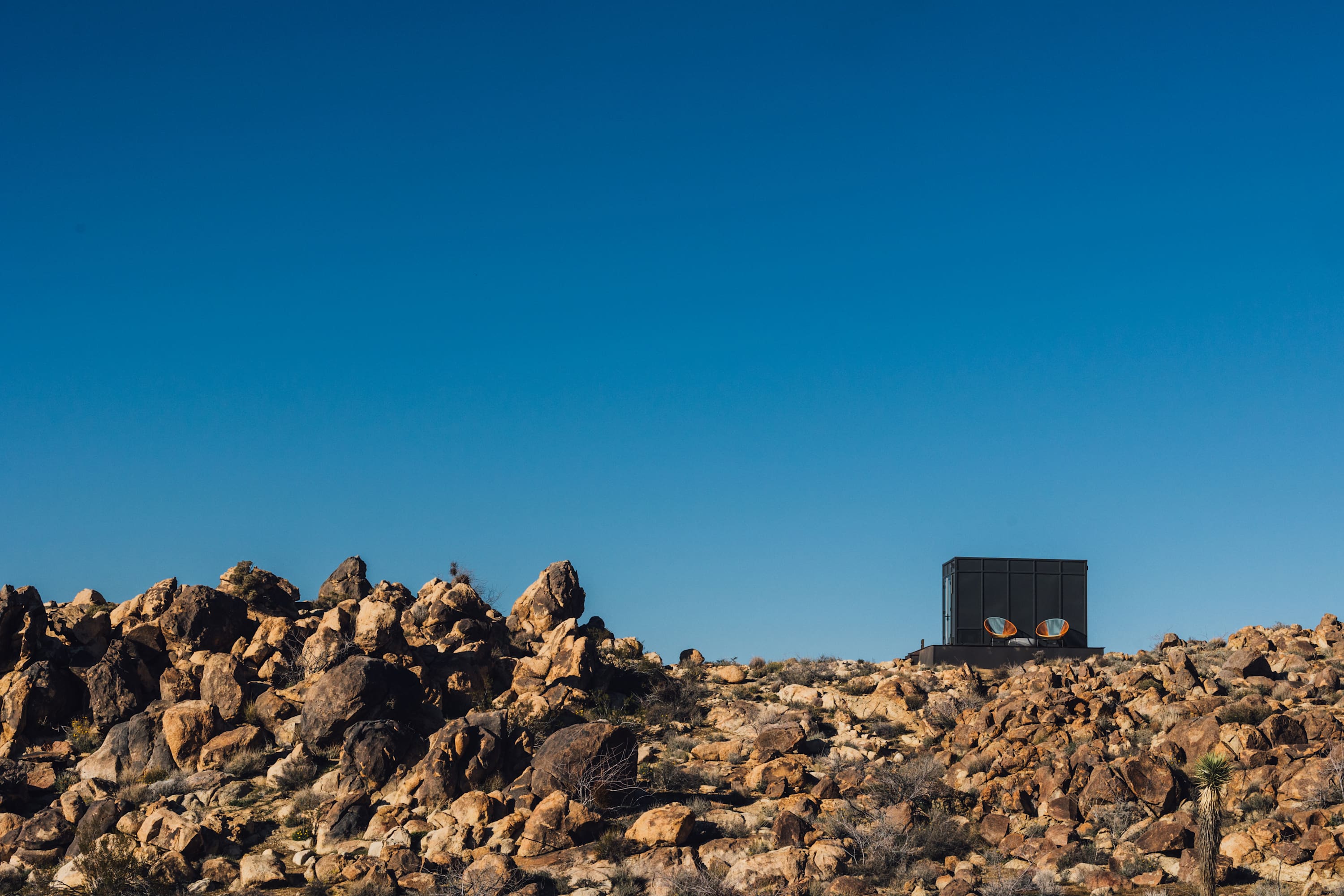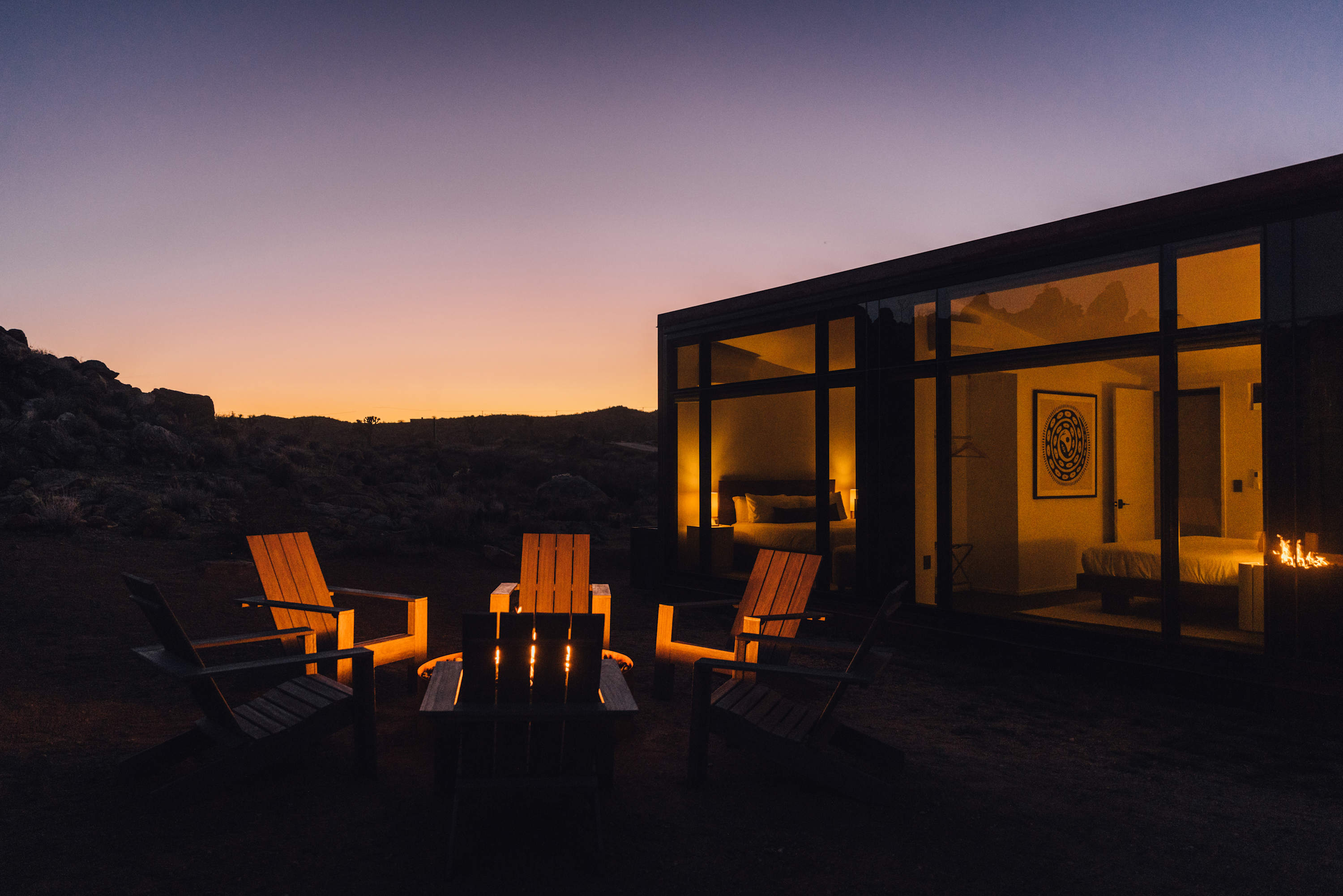 Welcome to Reflections by Homestead Modern - a serene desert sanctuary where glass walls mirror ancient rock formations and the stillness of Joshua Tree wraps around you. Set against the mountains and thoughtfully designed for any sized group that wants privacy, this secluded retreat invites you to slow down, reconnect, and soak in the beauty of the High Desert. From stargazing soaks to sunrise yoga in the glass studio perched in the boulders, Reflections is an immersive escape into nature and quiet luxury.
