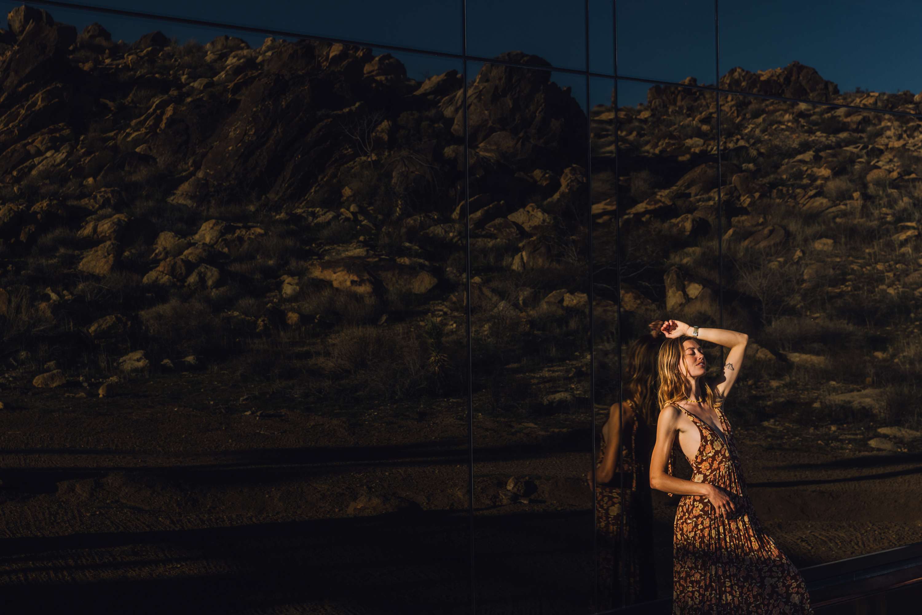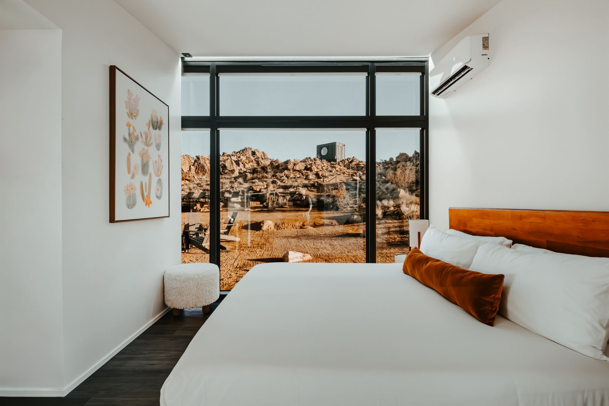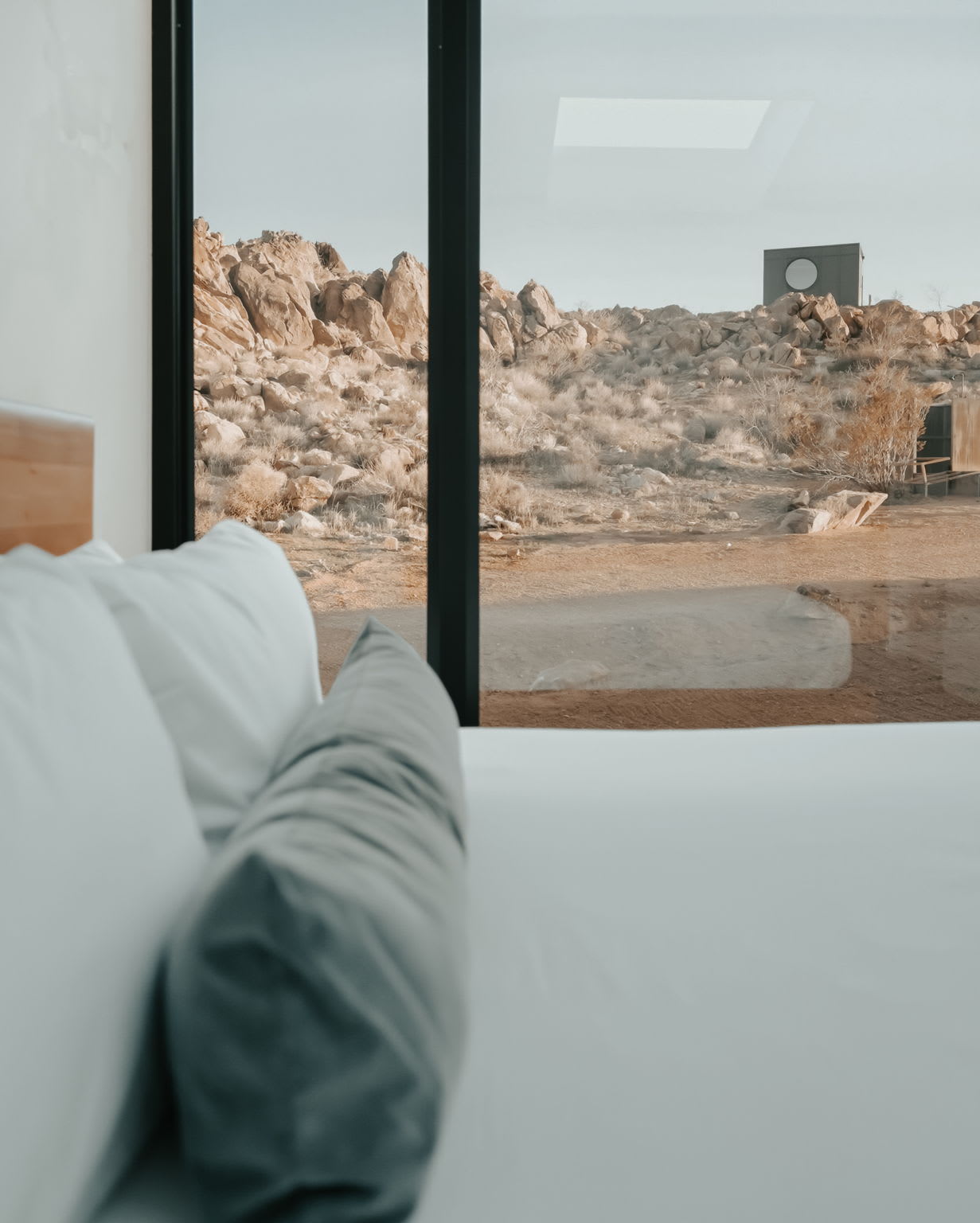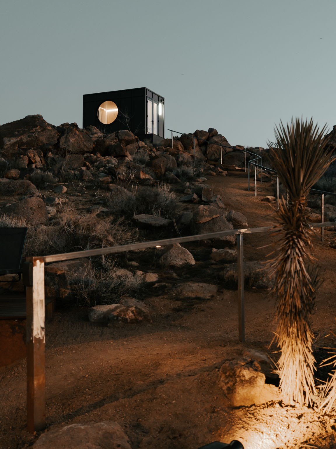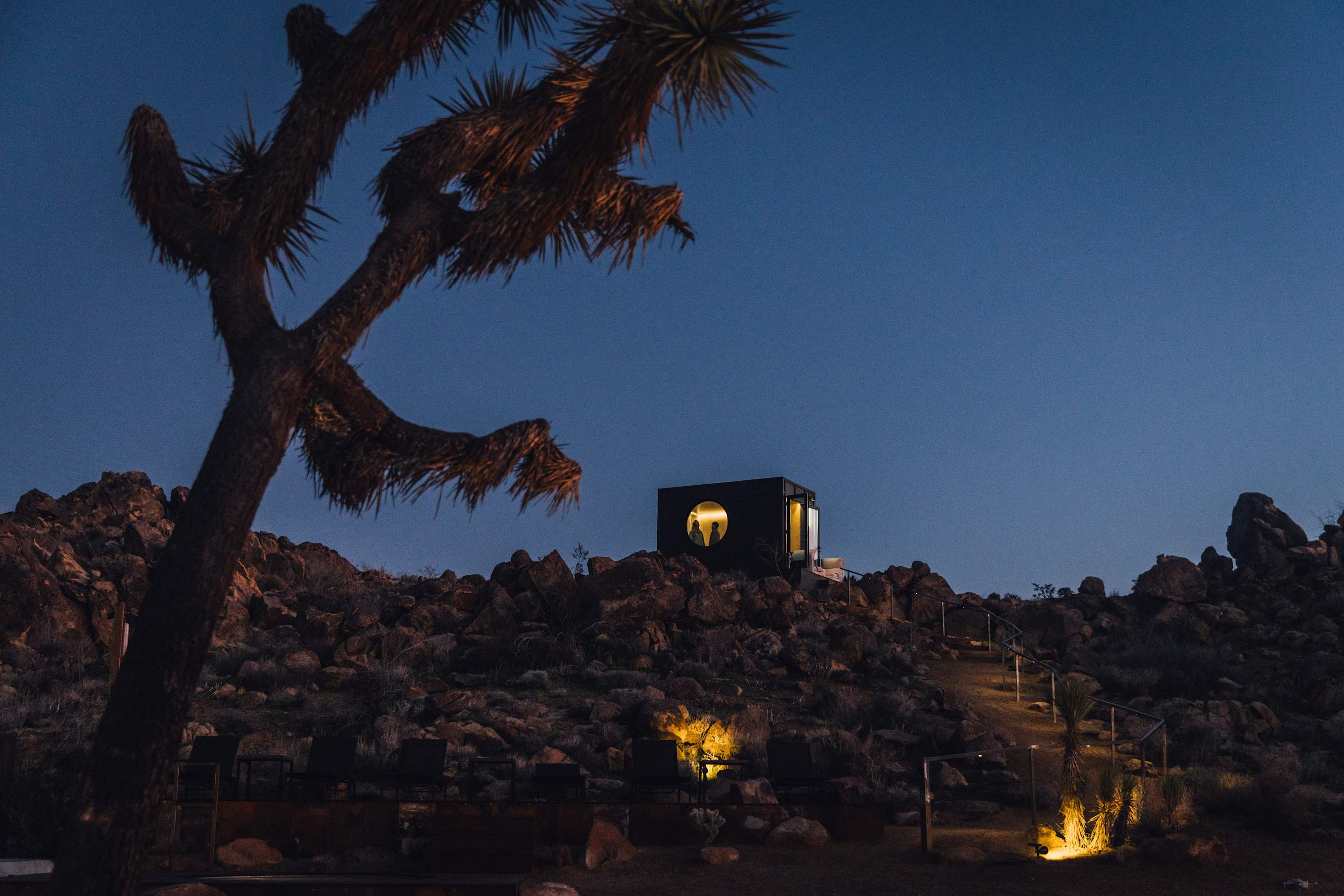 Welcome to Reflections by Homestead Modern - a serene desert sanctuary where glass walls mirror ancient rock formations and the stillness of Joshua Tree wraps around you. Set against the mountains and thoughtfully designed for any sized group that wants privacy, this secluded retreat invites you to slow down, reconnect, and soak in the beauty of the High Desert. From stargazing soaks to sunrise yoga in the glass studio perched in the boulders, Reflections is an immersive escape into nature and quiet luxury.
