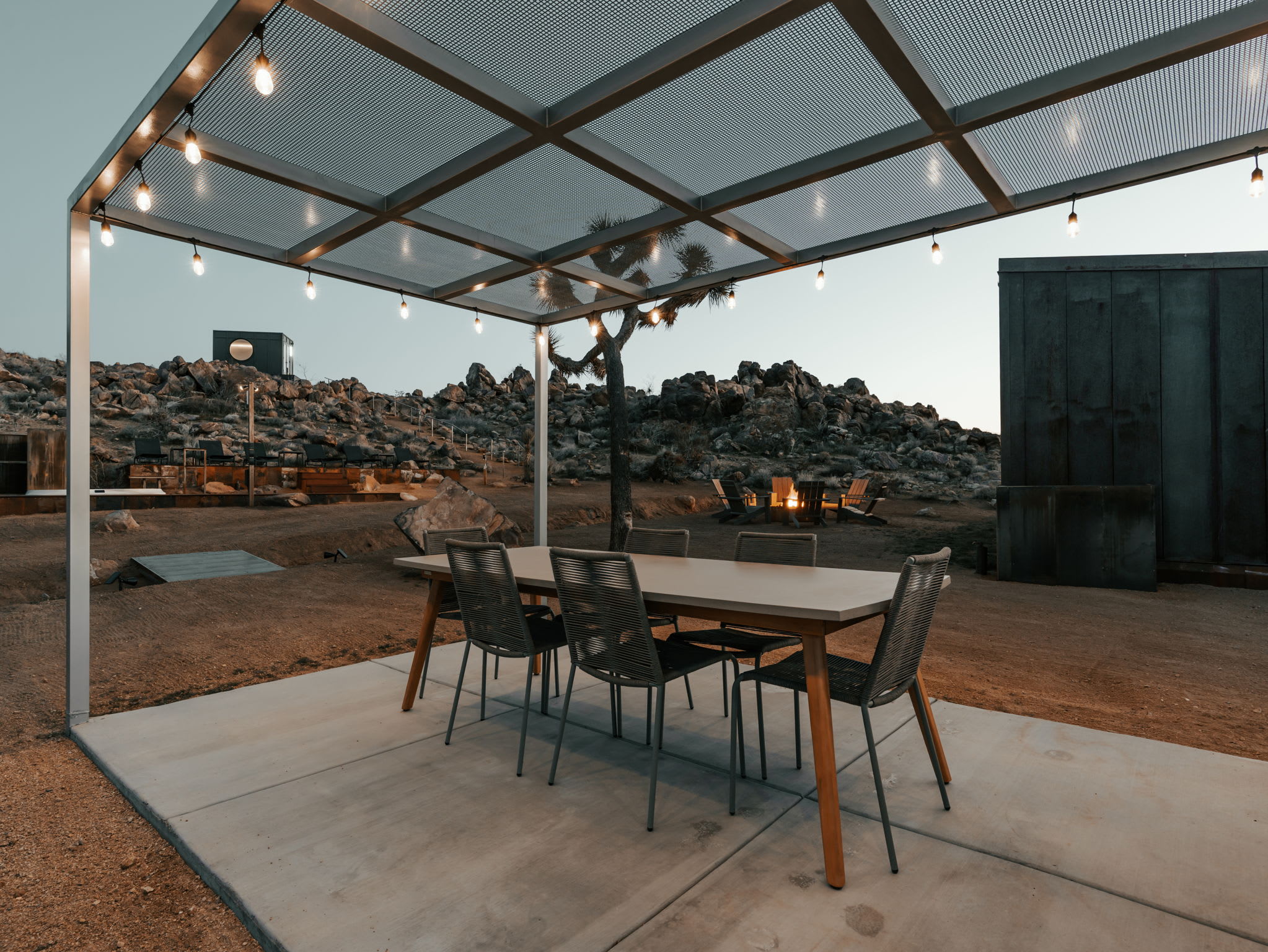 Designed for relaxation, gathering and stargazing, the outdoor spaces offer multiple zones to unwind and connect.