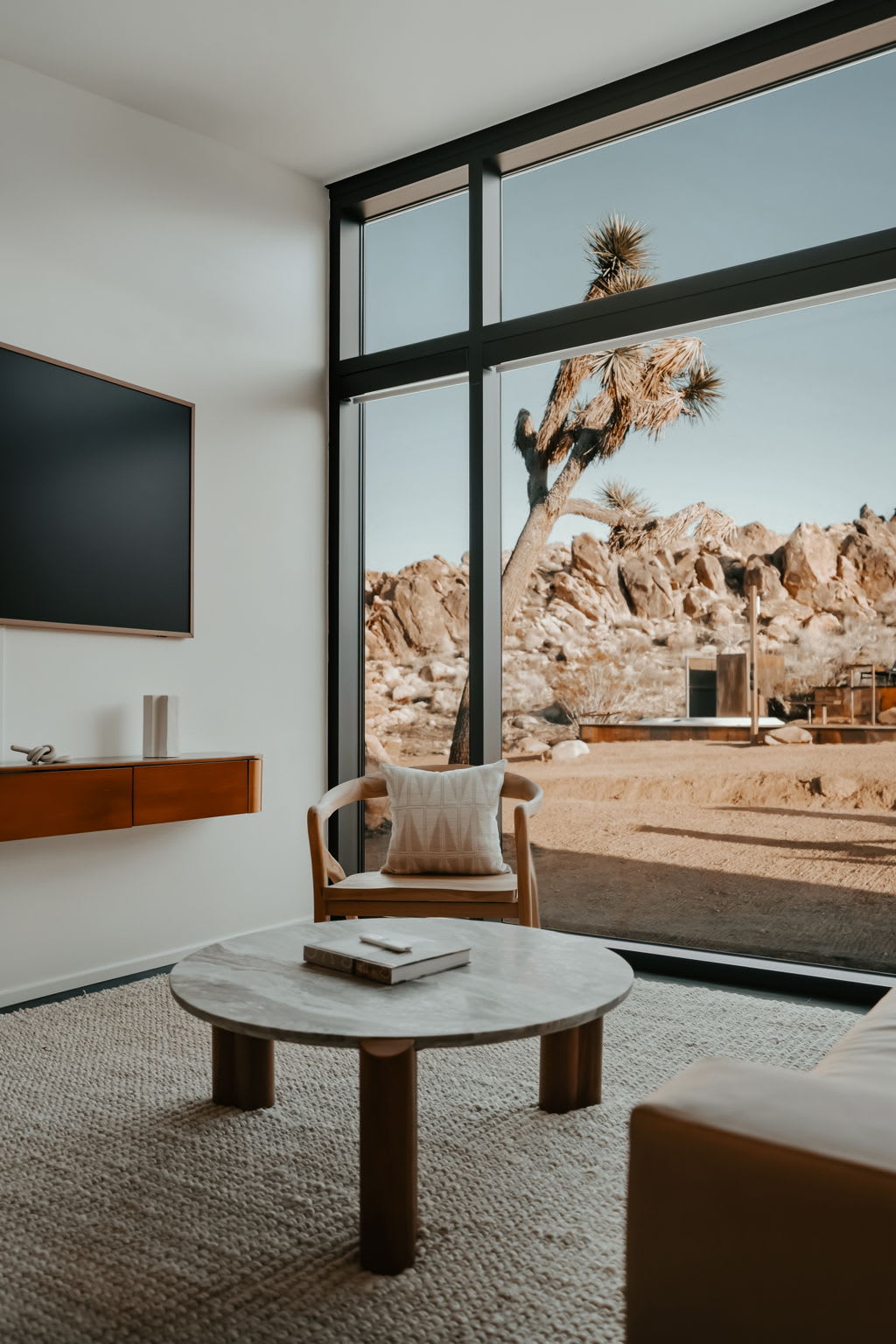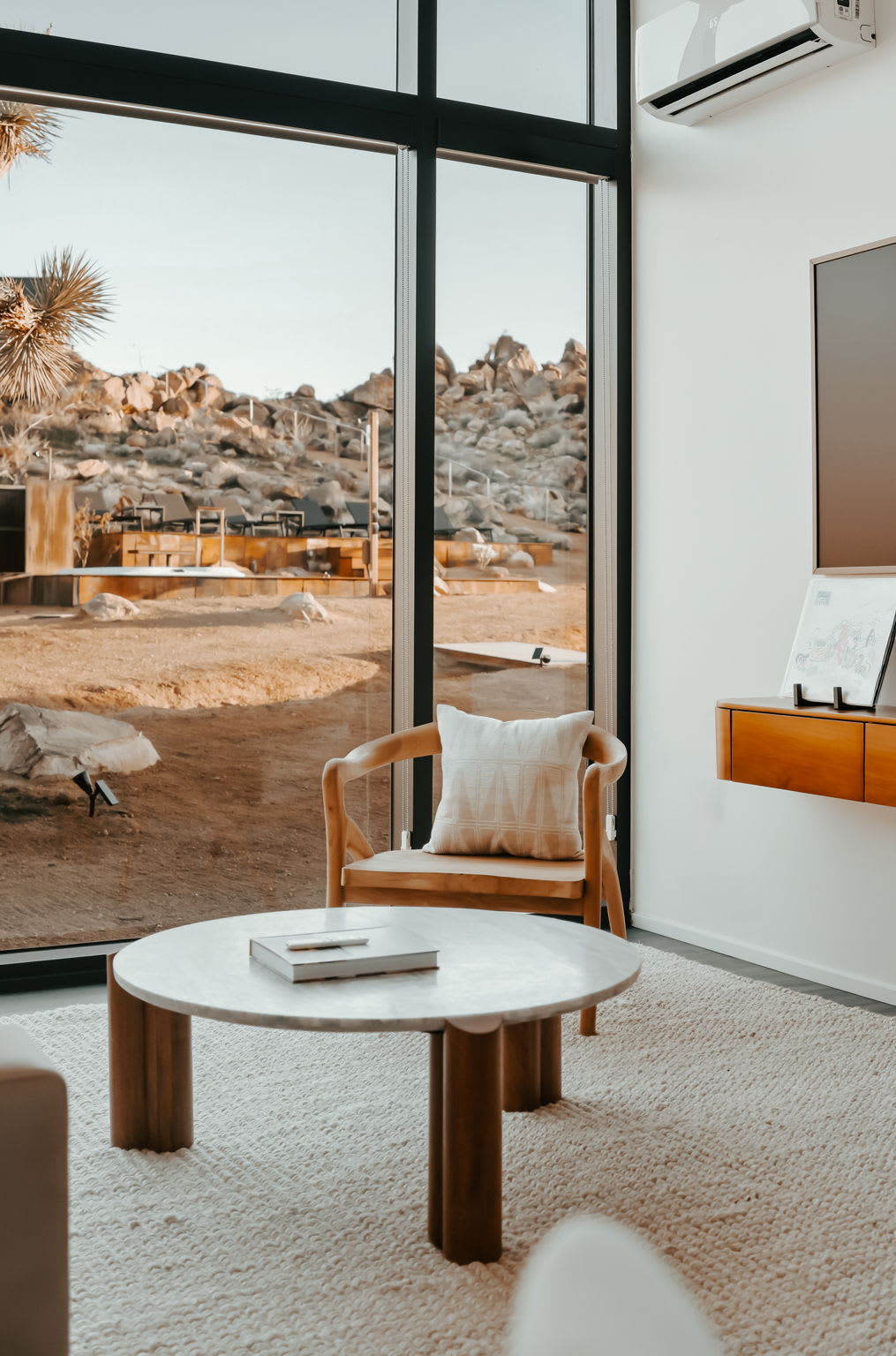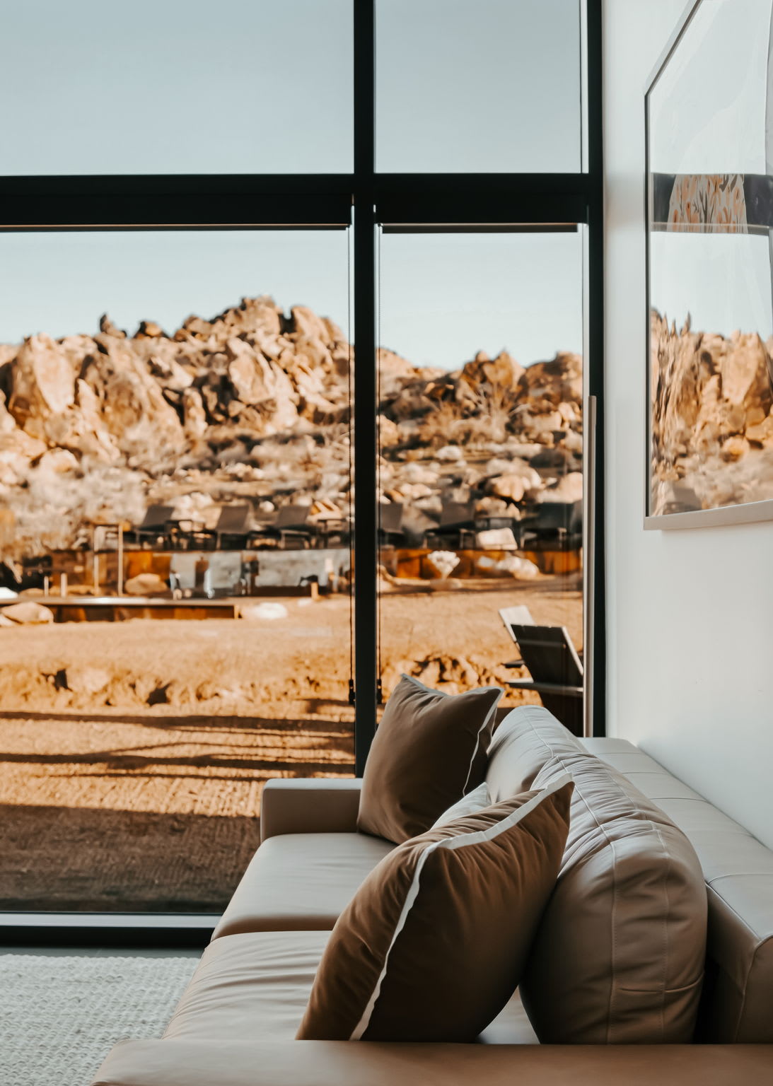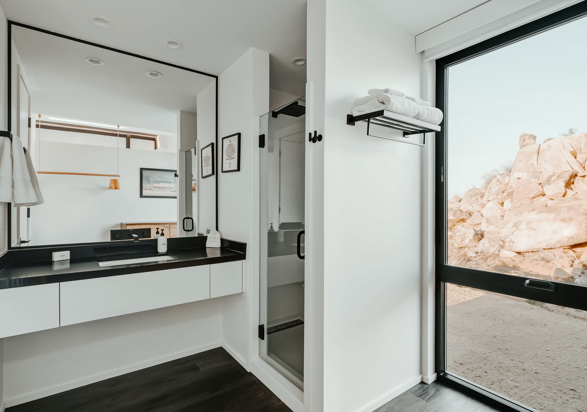 ◎ Expansive glass walls with rock & desert views
