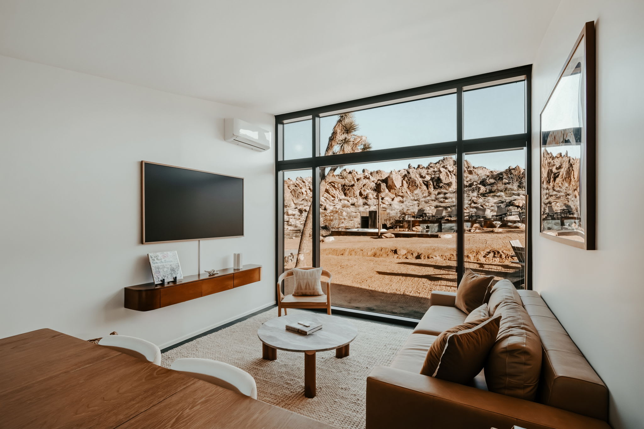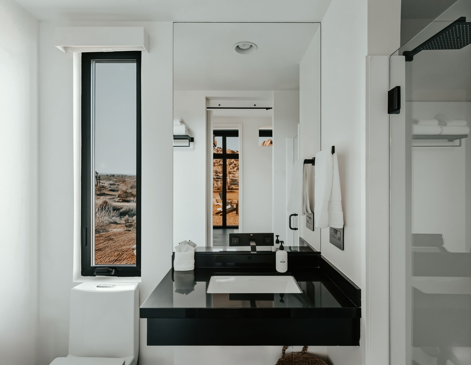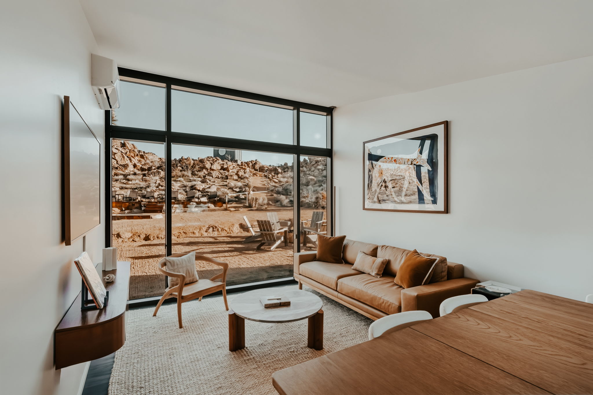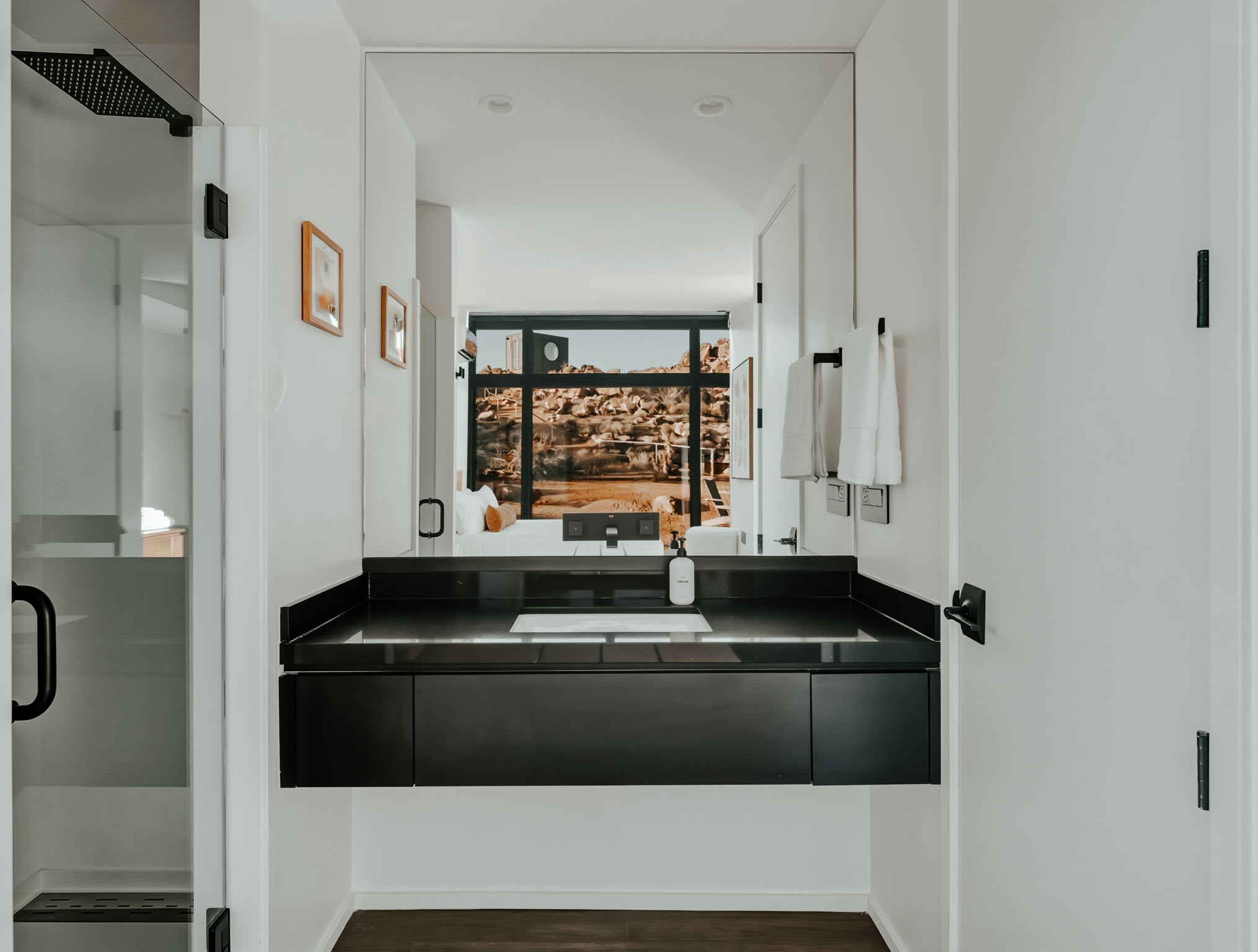 ◎ Expansive glass walls with rock & desert views