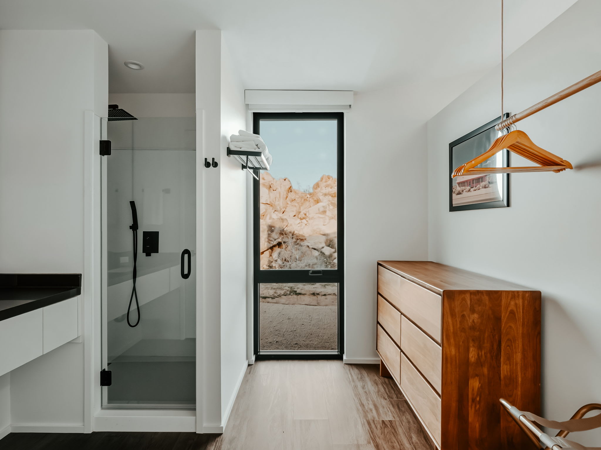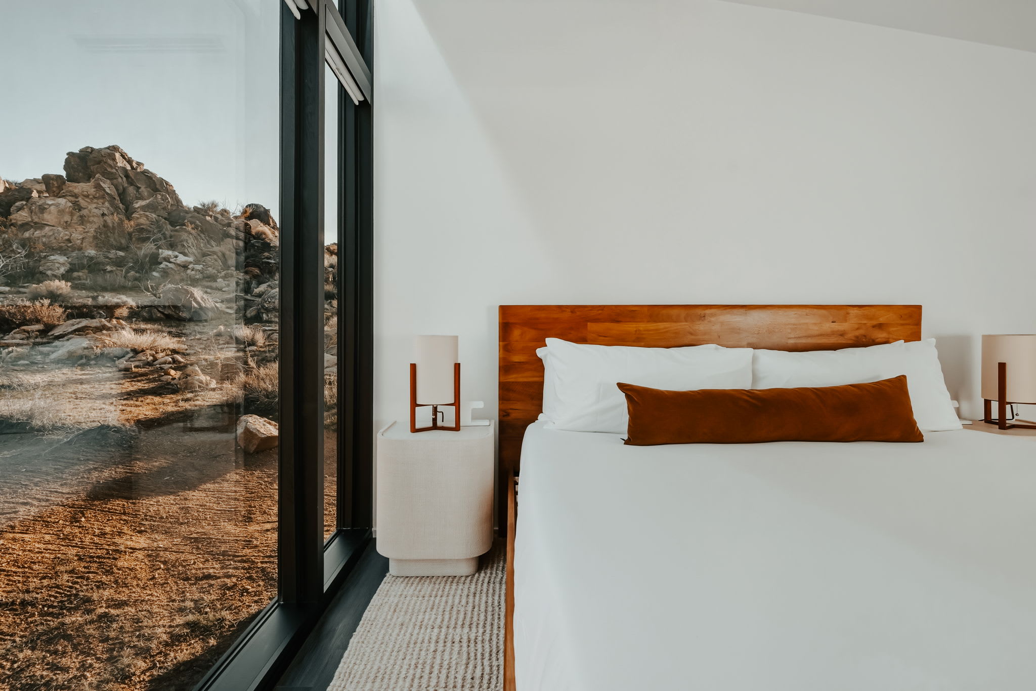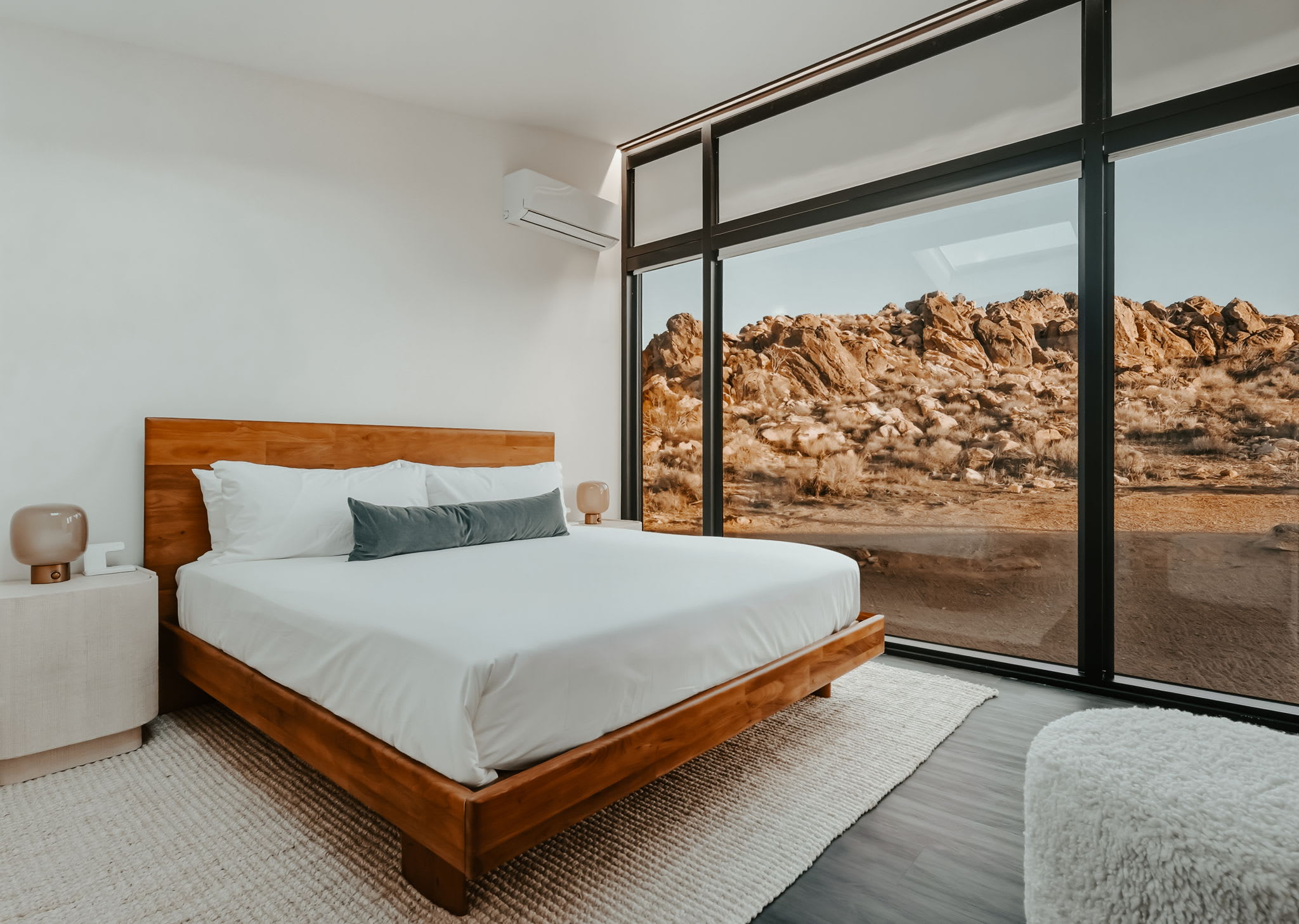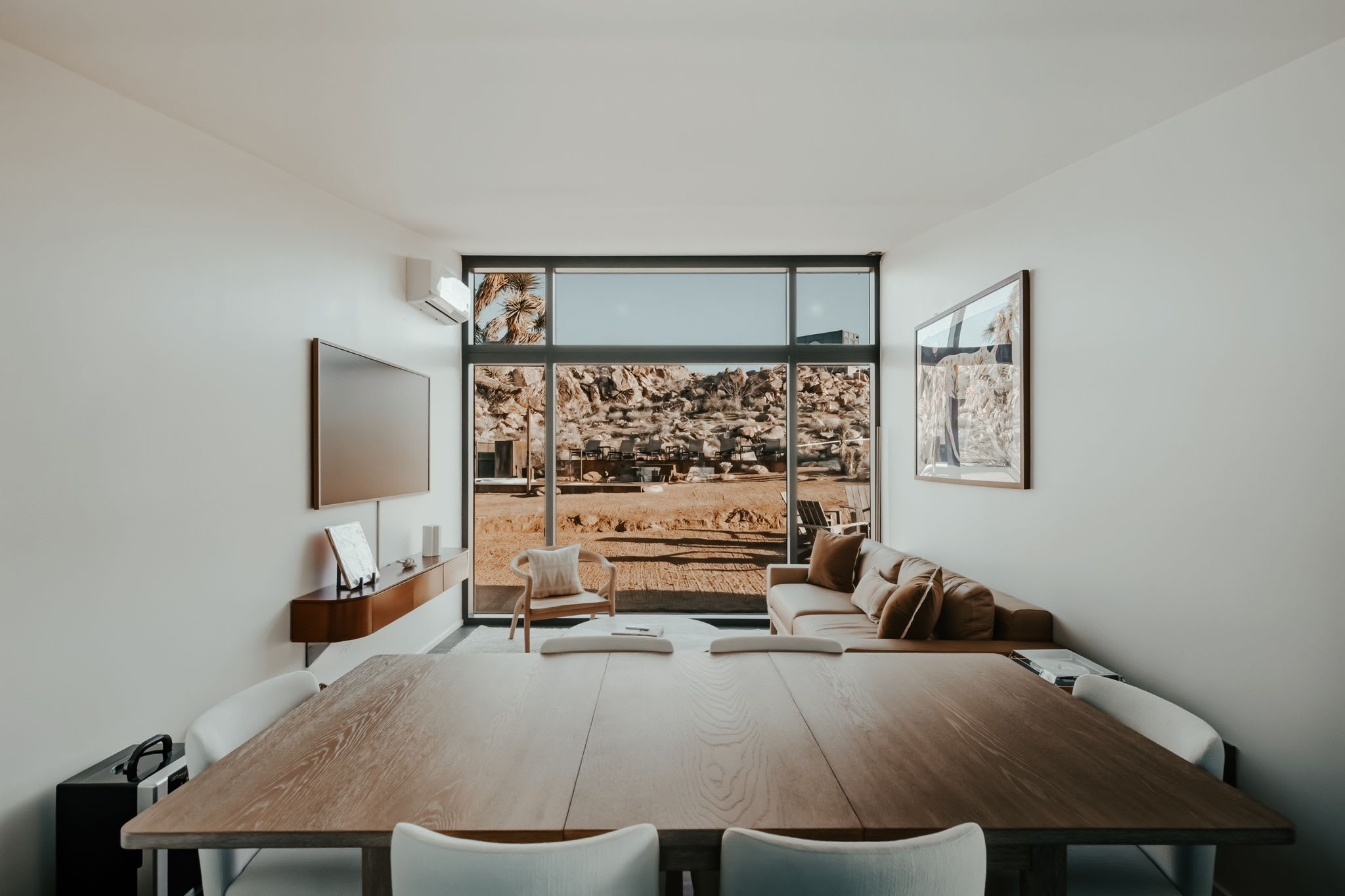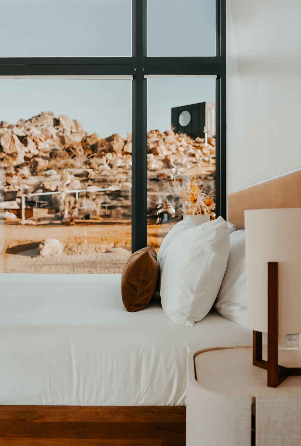 ◎ Expansive glass walls with rock & desert views
