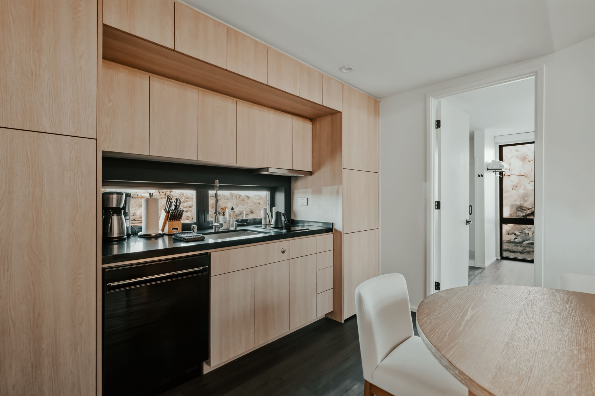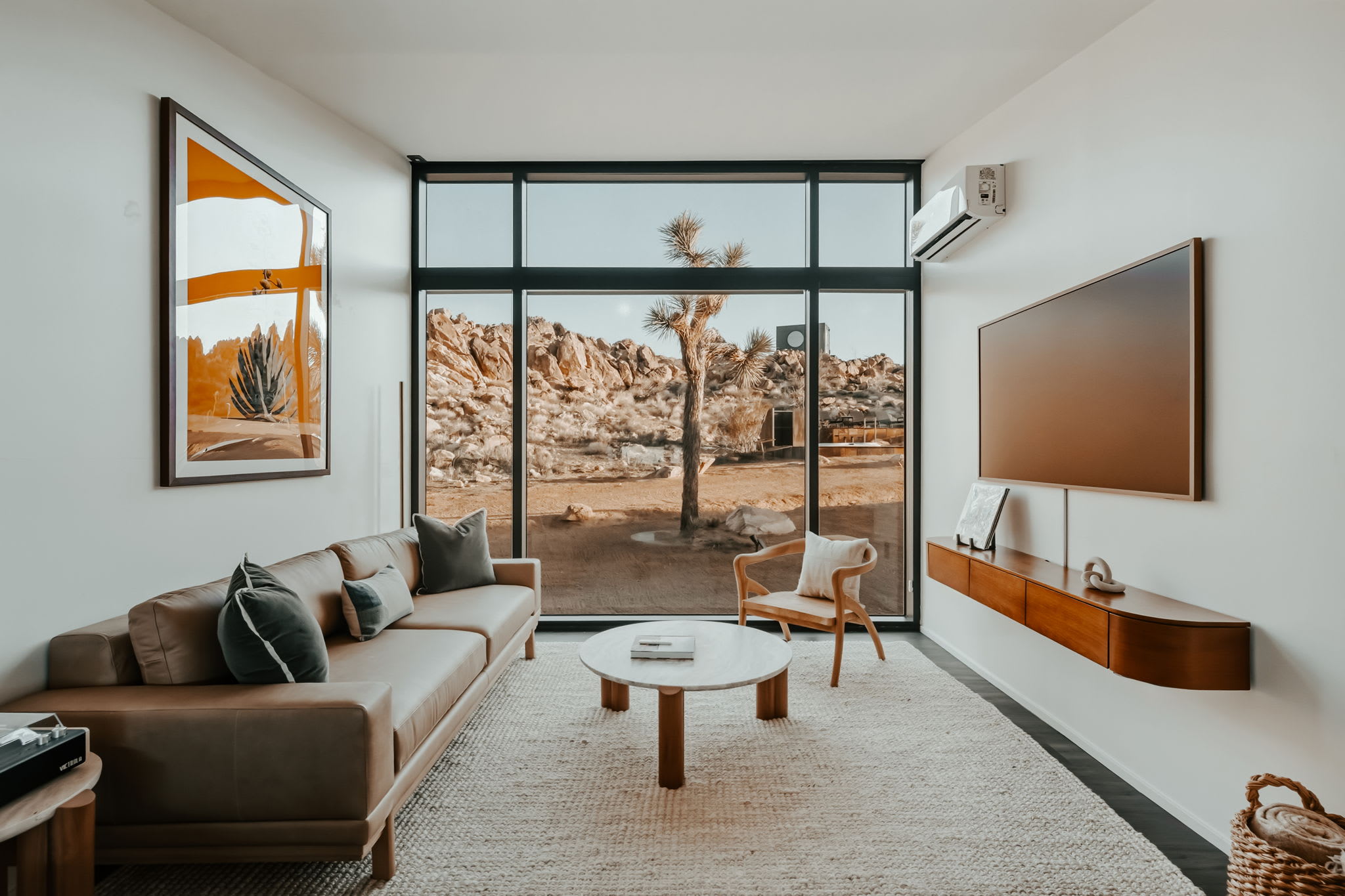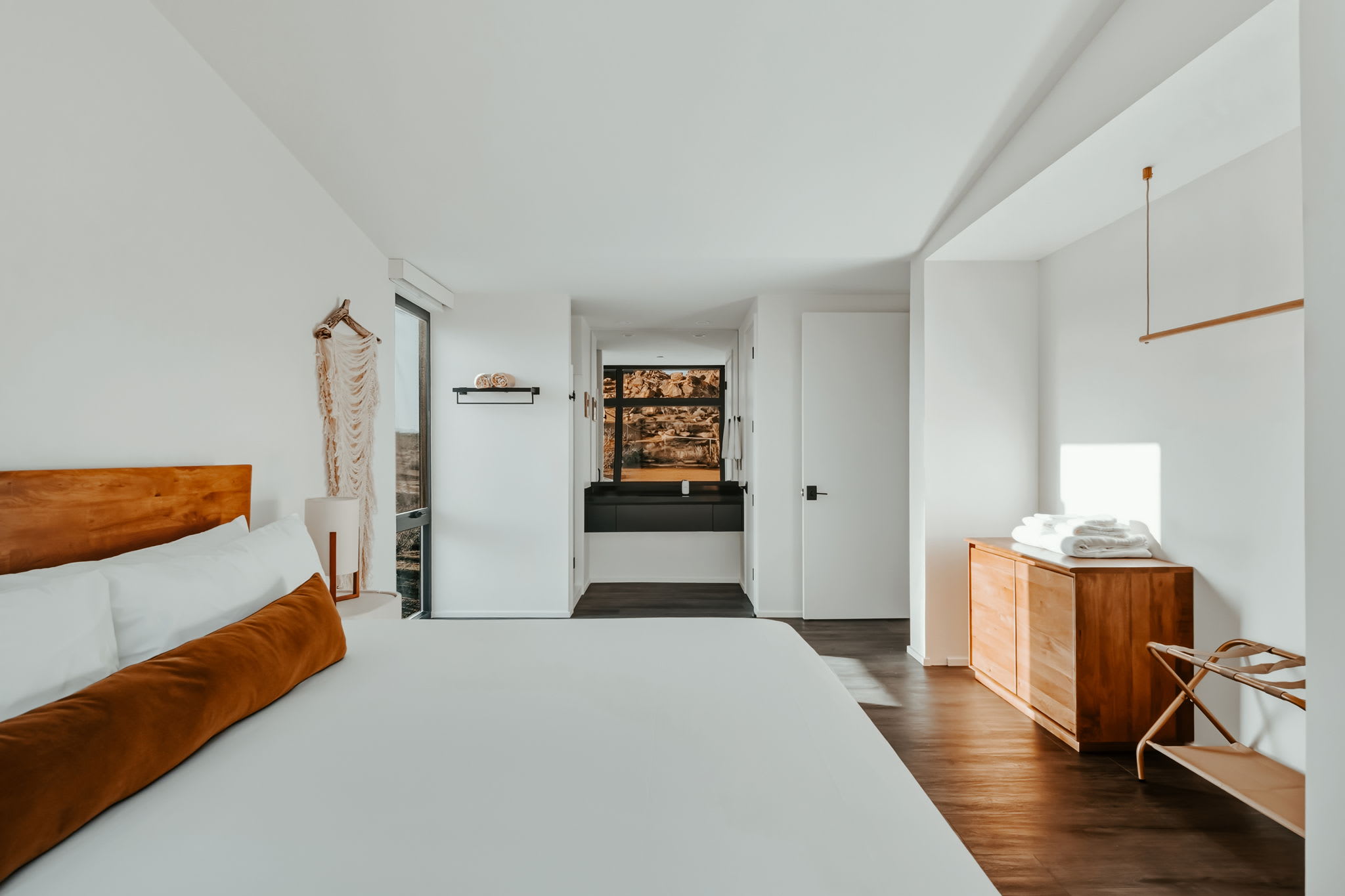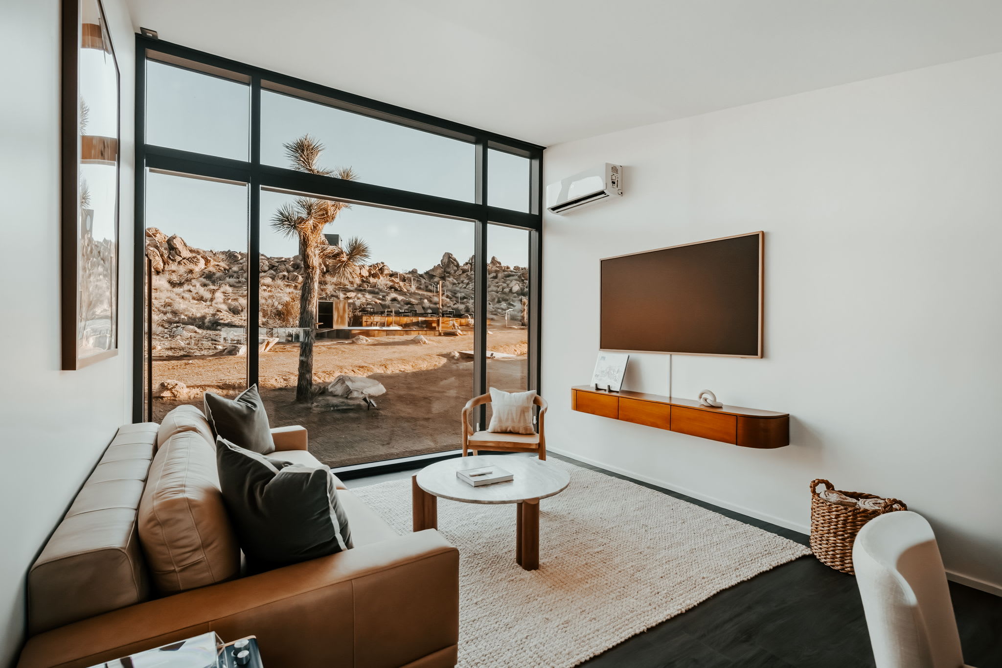 ◎ Expansive glass walls with rock & desert views