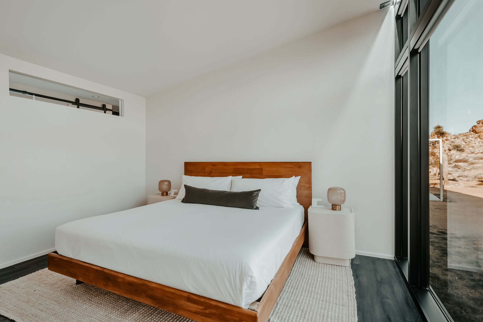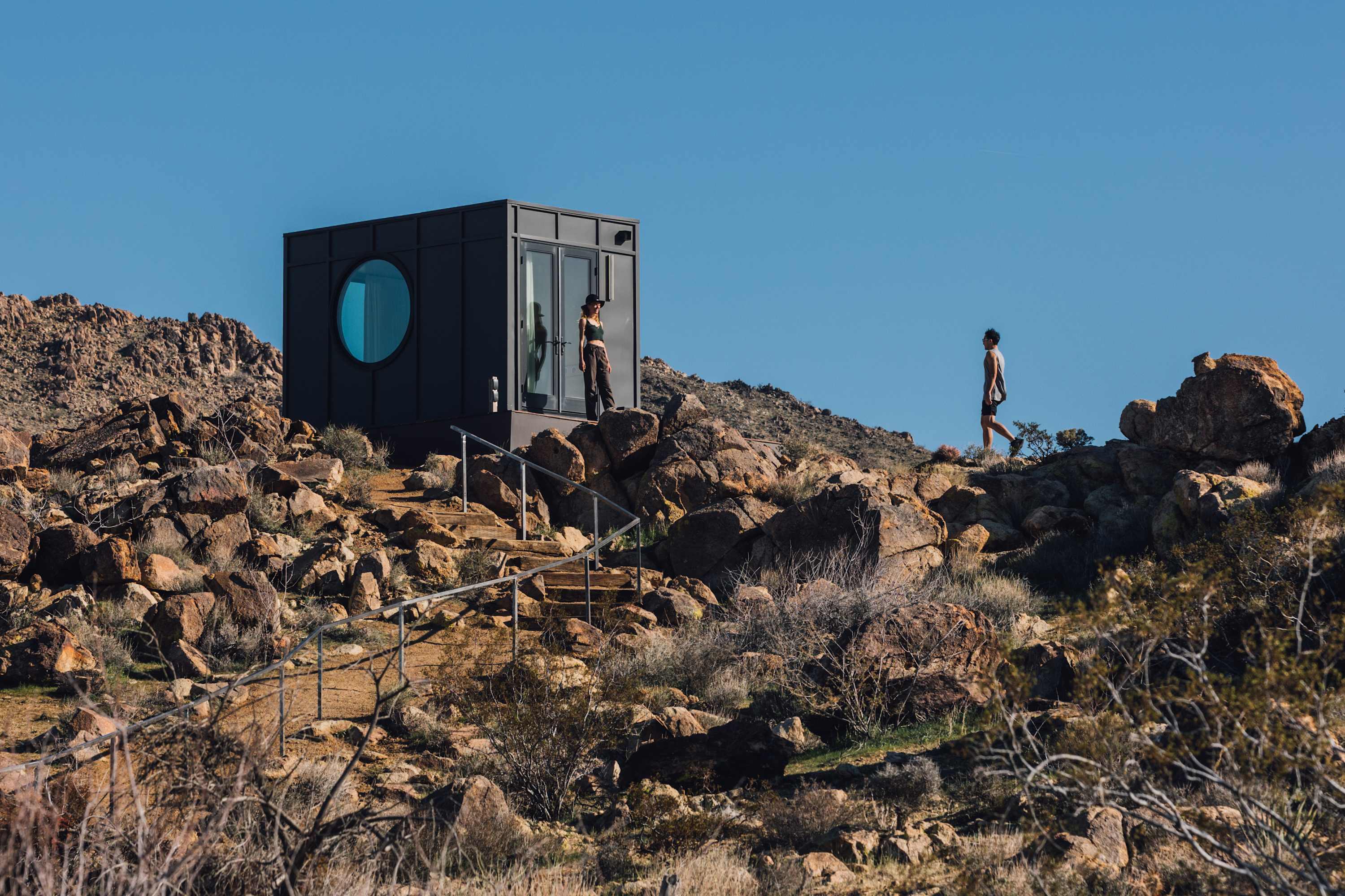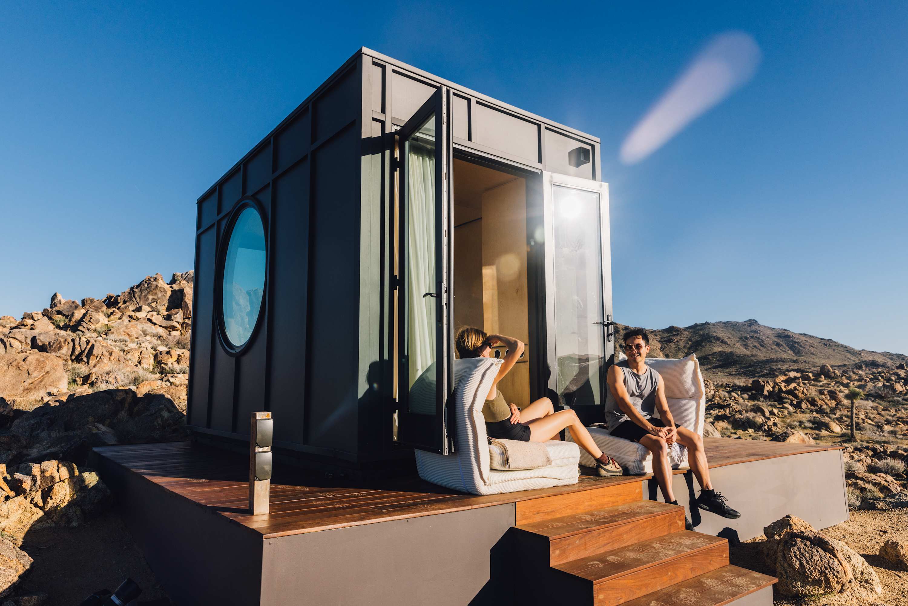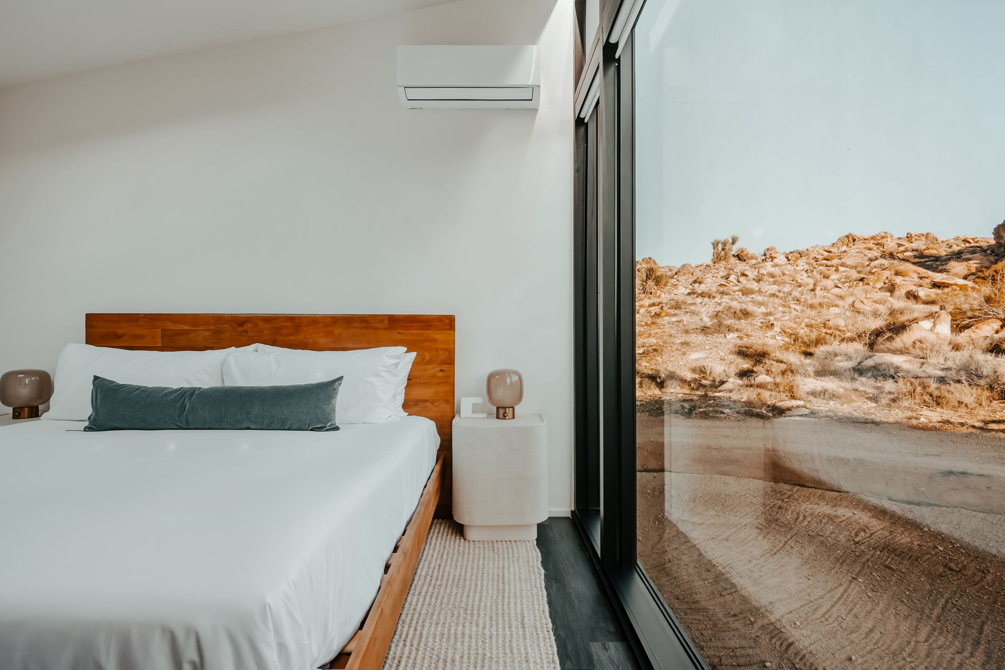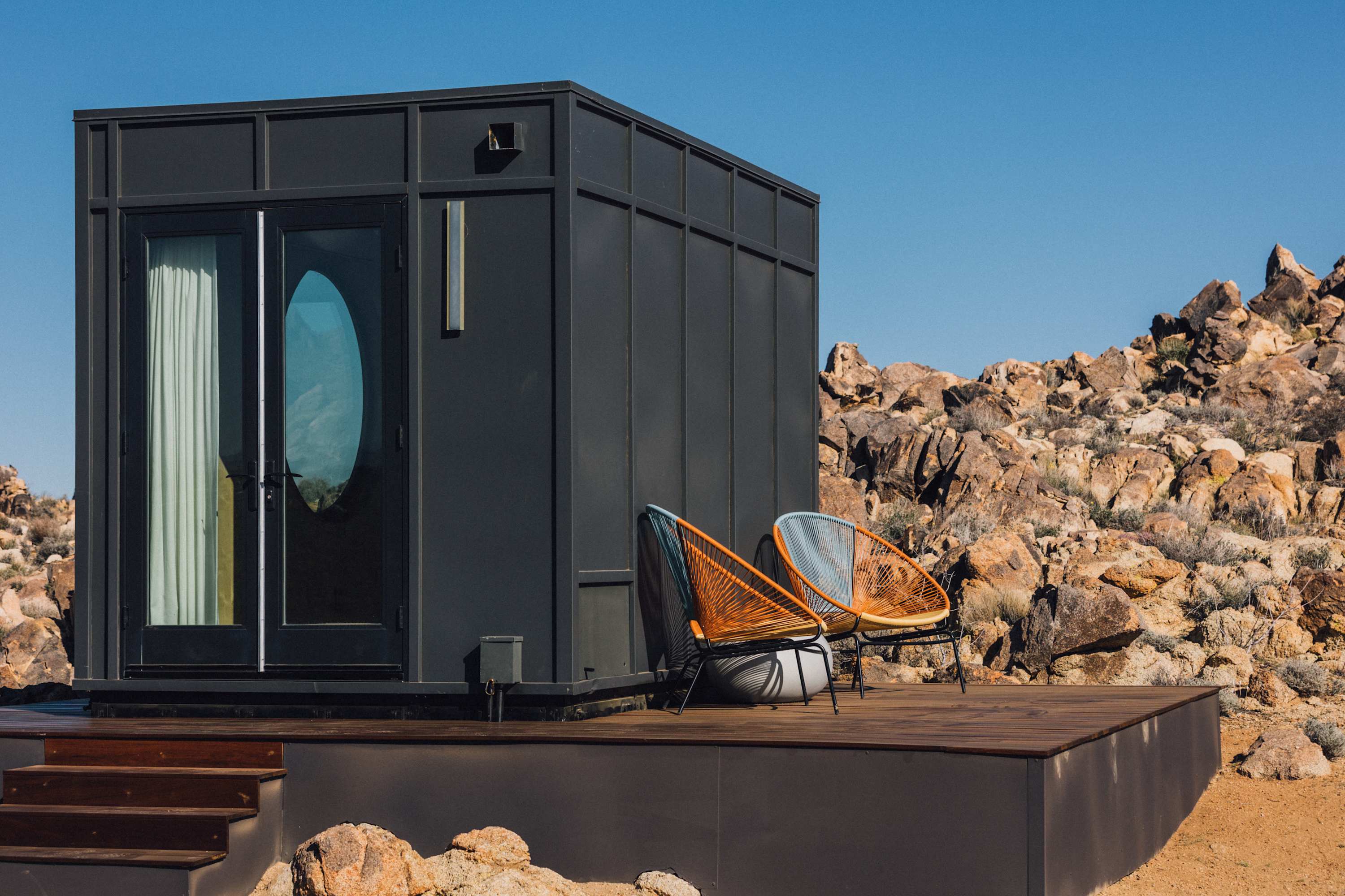 Nestled at the base of a boulder-filled mountain in a peaceful pocket of the High Desert, Reflections by Homestead Modern blends modern design with soulful desert surroundings. The listing includes the 2BR house and a 1BR house on one property, making it an ideal destination for groups seeking space, comfort, and connection without sacrificing privacy.
